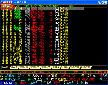 轟天雷除了把漲跌停股歸類外,也提供連續外盤、連續內盤、創今高、創今低、連續大單、漲停打開、跌停打開等,歸類為獨立報價畫面,對於空手的人,您可以從中選取適合自己操作的股票,亦適合短線當沖、喜歡作熱門股的投資者。